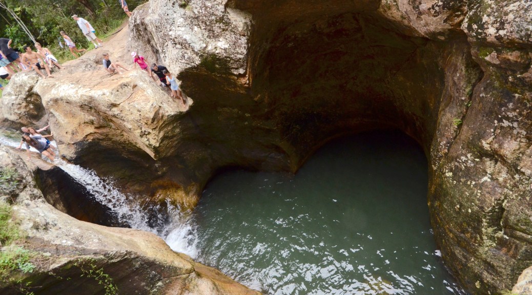 We drove outside of town, to a residence were we parked the car and our guide, John, knew the people who’s property the waterfall was on. As a working farm, different local crops were labeled in Swahili as we worked our way down the slicked dirt paths to what I would loosely call a grotto. The waterfall pouring into a small pool with an area of ground cover that we explored. John then told me that in the summer rains the waterfall is much larger, and the pool from the grotto takes up the area that we were standing.
